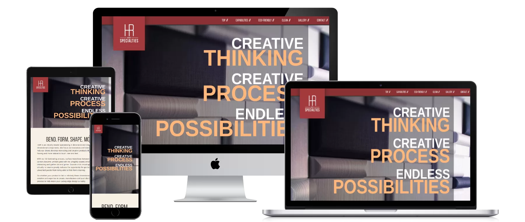 H&R is an industry leader specializing in decorative non-linear three dimensional components. We focus our resources and talents in this area to help our clients develop interesting and creative products that are free flowing and more natural to touch, see and feel. H&R Wood Specialties products are always a blast to photograph. As creative and unique as their products are so are our photographers. The photos are typically used in trade magazine ad layouts, trade show marketing materials, promotional materials and of course, their website which we crafted. Their promotional video was so much fun to produce too!